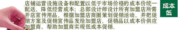 案及促銷宣傳品發(fā)給加盟店,促銷品以成本價供應(yīng)加盟商,幫助加盟商實現(xiàn)低成本促銷。
